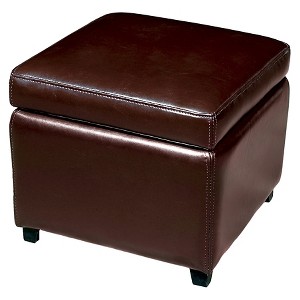 Full Leather Small Storage Cube Ottoman Dark Brown - Baxton Studio
