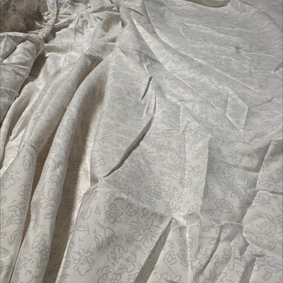 Really pretty and soft but it sounds like you’re sleeping on plastic bags. Makes a lot of noise when getting in and put of bed, which I don’t really care for. I can live with it for now I guess. I purchased a king size for my queen size bed with 4inch foam mattress topper, it fit perfect.