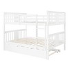 - [Versatility galore] This bunk bed features one full size upper bed, one full size bottom bed and a twin size trundle for accommodating you or any overnight sleepers. It can also be divided into two individual beds for even more convenience, depending on how you want to organize your space. No spring box needed.