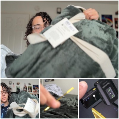 I really love this blanket. It's very soft. The only problem I have is that when I opened the package the packaging/ribbion that held the blanket together was off the blanket as if someone did not put it on correctly. Then when putting the blanket on my bed, I found a gold flake and a tiny speck of styrofoam hidden in the blanket. (See photos) (I have nothing gold like that or styrofoam in my room) With the ribbon being off the blanket, me finding a gold flake and styrofoam hidden in this blanket, this means someone has used it before. I ordered this NEW and I was hoping that no one had used it before me. I'm very funny about using stuff other people have used before. I'm still keeping it. But I'm mad that I got a returned product and not new....the only reason why I'm giving this product 4 stars is because it's soft.