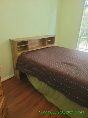 Bought the headboard for my queen size adjustable bed. Works great together, my package did not have the adjustable shelves or the pins, but I contacted Sauder and they are sending them to me in the next week. They were easy to contact and efficiently handled my issue. I bought the white, it is beautiful, be aware it is not solid wood but for the price you have to know that already. Clean lines, wasn't extremely difficult to assemble, but probably took me longer than most would take. Heavy, I attached it to the wall, for security. To summarize, it is nice looking, simple lines, clean looking, not sure how strong it would be in a kids room but looks nice for guest room.