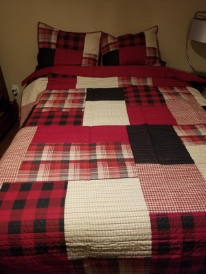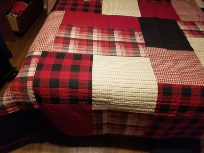 [This review was collected as part of a promotion.] This is a great set that is reminiscent of a cozy cabin in the woods. I love the red and black quilted look which works great for a holiday spruce up to your bedroom. The coverlet is reversible to solid red for a more versatile option. I appreciate that this is machine washable and actually fits in my home washing machine. Thus far, I've had no bleeding or fading of the colors.
