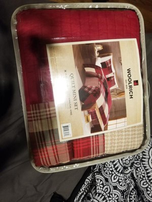 Full/Queen Sunset Coverlet Mini Set - Red: Woolrich, Cotton Percale, Reversible Plaid Design, Includes 2 Shams