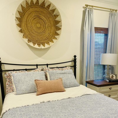 I immediately fell in love with this color of blue and the floral print. It’s the perfect bedding for summer time. It’s lightweight and has gauzy texture to it. It is easy to snag. It does also have the wrinkle look to it but it doesn’t bother me. I mixed it with another floral print pillow case from the Threshold line.