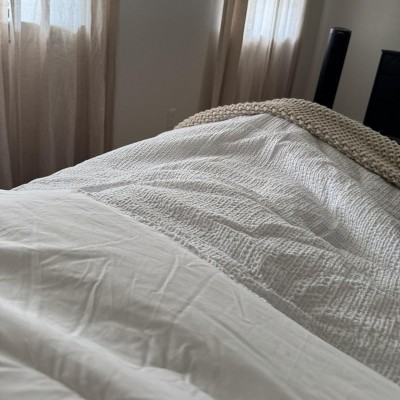 DO NOT BUY! TERRIBLE QUALITY If I could leave no stars, I would. I washed before using and this comforter is now bunched up almost as though it's pieces of foam on the inside and not fluff. The waffle weave is such poor quality you can see it is on the verge of tearing already. It will also not lay flat. It looks terrible. I'm so disappointed I spent money on this. Target, please, please fix this product or remove it from sale. It is terrible. I can't say it enough. This is the first Target review I have ever felt the need to leave. Save your money. This is, no exaggeration, the worst thing I have ever purchased from Target.