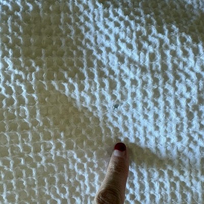 Discoloration after no use and 1 wash. It’s too big to dry properly leaving a wrinkly mess.