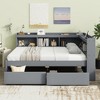 Full Size L-shaped Bookcases Bed with Power Outlets and Two Drawers