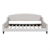 This full-size daybed is the perfect addition to any living space. The fabric selected for the collection features blends designed to last. Crafted with a plywood frame with wood supports, this dapper design strikes a glamourous wingback silhouette padded with foam fill and draped in lush upholstery with deep button tufting and tailored piped edges. This daybed is an ideal choice for a living room, den, office, or any living space. The design, construction, and overall functionality are certain to grace your interior with added charm.
