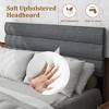 - Plush Upholstered Headboard for Ergonomic Support The headboard is crafted with a soft, skin-friendly upholstered fabric and high-elastic sponge padding, contouring to the waist and back for optimal comfort. Ideal for leaning back during pre-sleep reading or relaxation, it enhances both style and coziness.