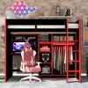 Transform your room into a high-energy gaming hub with the ModernLuxe Full Size Wood Gaming Loft Bed! Designed for gamers, students, and remote workers, this all-in-one loft bed pairs a full-size sleeping area (supports up to 600LBS, fits 6'' mattresses) with a sturdy underbed desk (110LBS capacity) for gaming setups, streaming, or productivity. Built-in RGB LED lights (adjustable green, red, blue) create an immersive gaming atmosphere, while an open wardrobe and multi-level storage compartments keep games, gear, and clothes organized. Perfect for small rooms or apartments, it merges style, function, and space-saving design for ages 6+.