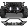 Full Width Front Bumper with Winch Plate for 2007-2018 Jeep Wrangler JK & JKU - Heavy-Duty Rock Crawler Bumper with D-Rings and LED LightsKey Features:Precise Vehicle-Specific CompatibilityEngineered for perfect fitment on all 2007-2018 Jeep Wrangler JK and JKU models (2-door and 4-door). This full-width bumper delivers seamless integration with factory mounting points for straightforward installation.Heavy-Duty Alloy Steel ConstructionBuilt with rugged 5/32-inch steel sheets in critical weight-bearing areas for superior impact resistance and durability. Reinforced internal and external D-ring mounts provide reliable recovery points for off-road use.Integrated Winch Ready DesignFeatures pre-drilled winch mounting holes for easy installation of up to a 12,000 lb winch without cutting or modification. The winch plate is fully integrated into the bumper structure for added strength.Enhanced Off-Road Lighting SystemIncludes two 18W LED light bars that provide powerful illumination for night driving and trail adventures. The unique chute design offers adjustable light mounting tabs (16-20 inch range) for additional lighting customization.Versatile Customization OptionsDesigned with a detachable decor section and included license plate bracket for personalized styling. The rugged design enhances vehicle protection while maintaining the iconic Jeep Wrangler aesthetic.Specifications:Material: Alloy SteelFinish: Textured Black Powder CoatCompatibility: 2007-2018 Jeep Wrangler JK & JKU (2/4 Door)Product Dimensions: 59.5" D x 9.8" W x 15" HIncluded Components: 1 Front Bumper, 2 D-Rings, 2 LED Light Bars, License Plate Bracket, Hardware KitWinch Capacity: Supports up to 12,000 lb winchesLighting: 2 x 18W LED Light BarsInstallation: Direct bolt-on using factory mounting points