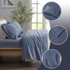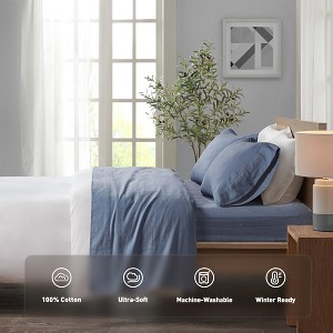 4Pcs 100% Cotton Ultra-Soft Sheet Set, Fully Elastic Novelty Printed OEKO Certified Flannel Sheet Set for Winter, Blue Solid, Full