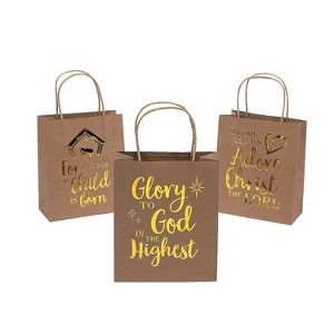 Fun Express 6 1/2" x 9" Medium Religious Gold Metallic Kraft Paper Gift Bags - 12 Pc.
