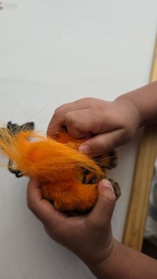 [This review was collected as part of a promotion.] I thought this was a cute toy for my toddler. I just wish that this one came with a brush. I know the other ones do come with it. Great toy for toddlers because all you have to do is push the beak or the heart to start the noise effects of the toy. The orange color also makes it a very attracted toy.