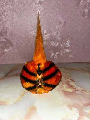 [This review was collected as part of a promotion.] Cute little hand size furby. Perfect color for the Halloween season. The package shows the item inside with directions. Great little toy for either gender.