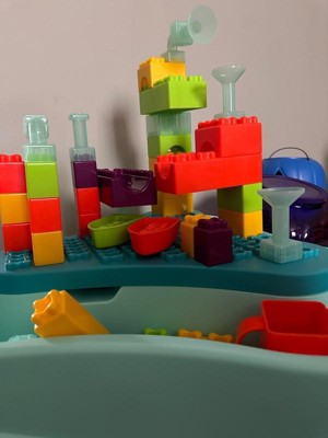 [This review was collected as part of a promotion.] I have received this product for my honest review, my 3 year old toddler loves it, we fill it up with water for her and enjoys building up the blocks. It comes with two small boats and she uses it to go around the blocks she has built. It seems as where the water fills up is like a river.It also comes with a small pitcher. Would recommend for any little one especially for the warmer days outside!!