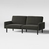 This futon offers a stylish and affordable solution for small spaces, making it ideal for guest rooms, playrooms, or college apartments. While many guests appreciate its modern design and ease of assembly, some have noted that it can be firm and less comfortable for extended use. Overall, it serves well as a temporary seating and sleeping option, especially when paired with additional cushions for comfort.