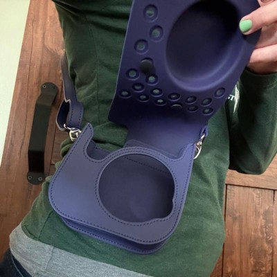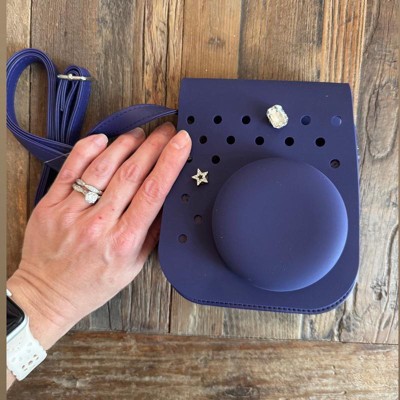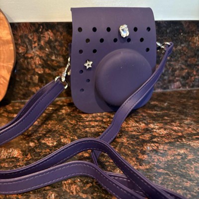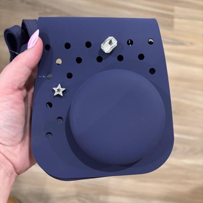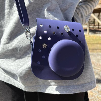 [This review was collected as part of a promotion.] This is a super cool camera case. This navy case is made quite similar to a pair of crocs. It has a nice strap which keeps your camera or iPhone securely tucked away. You could use this for a variety of different reasons. This case is perfect for kids or adults. You can add giblets to give it a more unique feel.