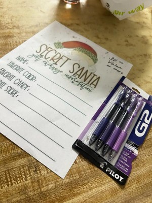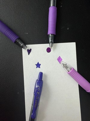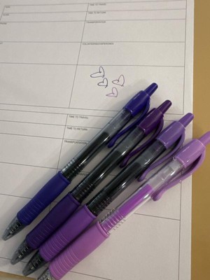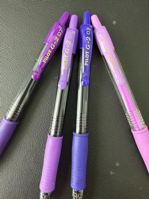 - Includes 5 Fine Point (0.7mm) Pilot G2 gel pens in Iris Blue, Grape, Purple, Metallic Purple and Pastel Purple