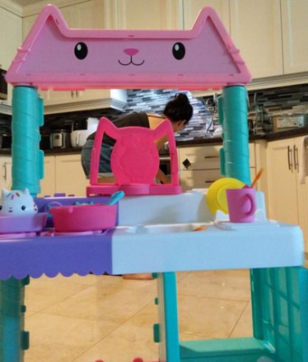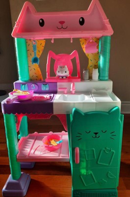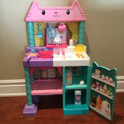 [This review was collected as part of a promotion.] Gabbys Dollhouse Cakey Cat Interactive Kitchen set is absolutely incredible. Kids can have so much fun playing with multiple kitchen accessories and parts. And if the accessories aren't enough, there are also 20 sounds and phrases as well. It is just over 3 ft tall. This is a must have for Gabbys Dollhouse fans. You can create toy food masterpieces. It is so cute with cat themed items. There is lots of room and items to play with. This play kitchen has endless opportunities for play and fun. It was easy to build with instructions and no need for tools other than screwdriver for batteries. It makes me happy knowing how ecstatic the kids are playing with this with their imagination. So much fun. I highly recommend this dream kitchen for your little Gabbys Dollhouse fan! Beautifully designed and made.