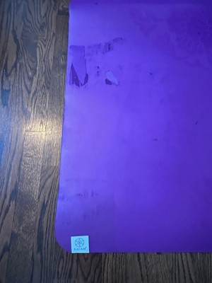 I purchased this mat late 2018. My classes were conducted on hard flooring and I am a heavy person who wanted cushioning, good grip and a cute style mat. I have used it fairly sporadically, without another layer on top such as a yoga towel. I have sprayed it with mat cleaner sometimes, other times a wipe with water and drape over a chair in shade to air dry. My disappointment with it is that the surface hasn't lifted from the foam like others have complained about, but that the top layer rubs off after repeated use. I have kept using the mat but every time I end up with purple dust on my hands, knees and feet especially. If I wore light coloured clothes I'm sure it would stain them. The most affected areas are the top and bottom of the mat where my hands and feet grip for down dog especially. It's disappointing for a premium mat to do this so I won't be repurchasing. The mat is also kind of heavy. *review sourced from Gaiam