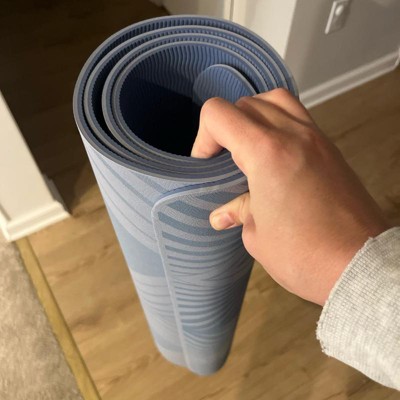 [This review was collected as part of a promotion.] This yoga mat is a nice material and color. I like that it has two different sides with two different color/pattern. I also like that it rolls up pretty compact. The mat is thinner than my last one, but still very padded and comfortable. I was way over due to upgrade my yoga mat and this one is so stylish and makes me excited to practice yoga in the morning. It has a factory smell but I’m sure that will air out.
