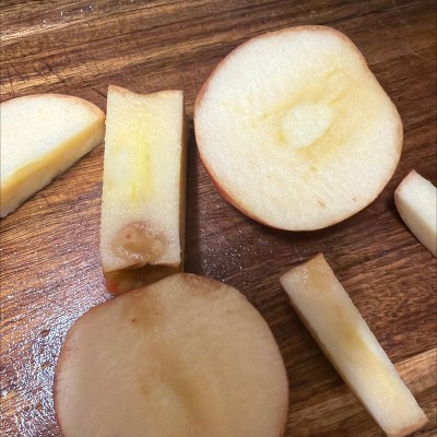 This was an online order for pickup. My apple was rotten, I also bought bananas which were bruised, and they weren't new bruises. A store employee picked these items for me on purpose. See photo