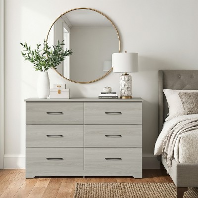 The Galano 6 Drawer Standard Dresser offers practical, easy-to-use storage for bedrooms, guest rooms, or apartments. Its wide, horizontal layout provides six drawers that help keep clothing and daily items neatly organized and within reach. The dresser is made from manufactured wood and features a clean, framed design that works well with a range of bedroom styles. Pre-installed drawer glides support smoother setup and everyday drawer use, while an interlocking drawer system and included tip-over restraint help add stability when properly secured. Raised legs create visual lightness and make it easier to clean underneath. With a width of 47.2", this dresser delivers generous storage without overwhelming the room.