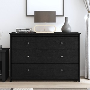 The Galano 6 Drawer Standard Dresser offers practical, easy-to-use storage for bedrooms, guest rooms, or apartments. Its wide, horizontal layout provides six drawers that help keep clothing and daily items neatly organized and within reach. The dresser is made from manufactured wood and features a clean, framed design that works well with a range of bedroom styles. Pre-installed drawer glides support smoother setup and everyday drawer use, while an interlocking drawer system and included tip-over restraint help add stability when properly secured. Raised legs create visual lightness and make it easier to clean underneath. With a width of 47.2", this dresser delivers generous storage without overwhelming the room.