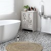 Bring a bright, elegant touch to your bathroom with this Galano Freestanding Bathroom Cabinet, sized at 25" W × 11.7" D × 32" H to fit easily in compact spaces or alongside existing fixtures. The mirrored acrylic doors feature a decorative patterned design that reflects light and adds a clean, stylish look while keeping bathroom essentials neatly hidden. Inside, an adjustable shelf supports up to 17.6 lbs—ideal for storing towels, toiletries, or extra bath items—while the top surface holds up to 19.8 lbs for candles, skincare, or daily necessities. Round metal knobs offer smooth everyday use, and the freestanding frame makes placement simple without wall mounting. Made from durable engineered wood, this cabinet blends seamlessly with modern, glam, or transitional bathroom décor. Clear assembly instructions are included to help make setup easy and stress-free.