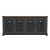 The GALANO TV Stand with Cutout Doors and Adjustable Shelves combines style and function to help anchor your living room setup. Designed with four decorative cutout cabinet doors, it brings a clean, welcoming look while keeping everyday items neatly organized behind closed storage. The wide 68.2" W × 17.2" D × 29.3" H size comfortably supports TVs up to 75 inches, and the adjustable shelves inside the cabinets allow you to organize media components, books, or décor in a way that suits your space. Cable management openings at the back help guide cords to keep your entertainment area looking tidy. Built from manufactured wood with metal hardware, this TV stand offers sturdy support along with a timeless, relaxed silhouette. Clear assembly instructions are included to help make setup smoother.
