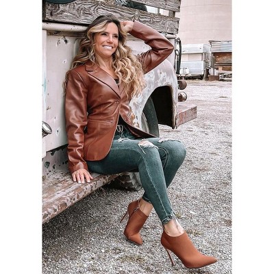 The dual tones definitely add a contrasting aesthetic which is eye-catching. The cowboy boots are a treat to the eyes, but also offer a relaxed walkability experience with the comfortable cushion insoles and stacked block heels. The pull tabs are convenient for an easy to wear experience. Type: Boots Upper Material: Faux Leather Outer Sole: TPR Closed Pointed Toe Stacked Block Heel Paneling Detail Pull Tabs Comfortable Cushion Insoles Heel Height: 2.5 inches SH5067