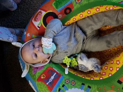 This is a total lifesaver!! My 7 month old enjoys playing in this. There are little texture bits on the animals and crinklies. Very helpful! Super easy to assemble. My zipper broke on this but I may have gotten a faulty one. Besides that, very useful!
