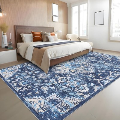 GAOMON Vintage Distressed Rug Floral Rug Non Slip Low Pile Area Rug Washable Accent Rugs for Living Room Bedroom