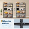 The fully adjustable design allows each of the five tiers to be customized in 1.4-inch increments, providing flexible configuration options for items of various heights. The modular design enables assembly as a single large unit or separation into multiple smaller racks, offering versatile storage solutions that adapt to your changing organizational needs. The boltless assembly system requires no additional tools and features intuitive connectors that make setup quick and straightforward.