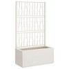This large rectangular garden planter is a perfect choice for anyone looking to beautify their outdoor areas with climbing plants. With its smooth white finish, this planter not only gives loads of space for growth but also brings a modern look that fits easily into balconies, patios, or terraces. Integrated Trellis: The planter comes with a trellis that supports climbing plants, allowing for vertical growth and maximizing space.UV Resistant Material: Made from tough polypropylene that holds up against the elements, it helps keep its color and prevents fading, ensuring long-lasting outdoor use.Contemporary Design: With a sleek and modern look, this planter boosts the visual appeal of any garden or balcony and complements contemporary decor styles effortlessly.Generous Capacity: With a volume of 21.1gal, it¡¯s spacious enough for a variety of plants including herbs, flowers, and decorative foliage.Easy Care: Cleaning is simple; just wipe it down with a damp cloth and avoid harsh chemicals for a lasting look. Color: White Shape: RectangularMaterial: Synthetic PolypropyleneIndoor/Outdoor: Outdoor OnlyRoom: Garden and terraceCapacity: 21.1galMaximum Volume: 80m3Dimensions: 14.2 x 31.5 x 55.1 in. (W x L x H)Weight: 12.15 lbsDrainage: YesDelivery Contains: Planter with trellis.Assembly Required: YesRecommended Number of People for Assembly: 1