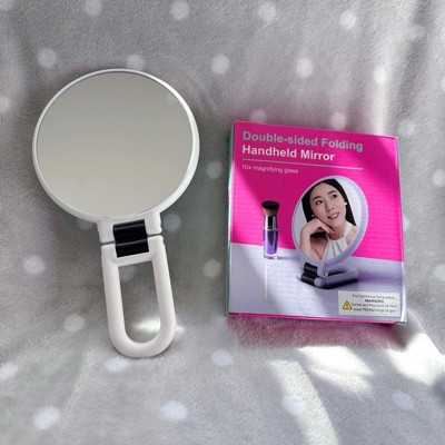 Mber Hand Mirror For Makeup Mirror Double Sided, 1X 10X Magnifying Mirror, Handheld Mirrors with Handle, Foldable Travel Hand Mirror W/ Stand White