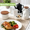 - [Beautiful Aesthetic] With its blend of premium ceramic and natural wood, this set boasts a simple yet elegant design. Its rustic, yet modern appearance seamlessly integrates with any home décor, adding a sophisticated touch to your dining setup.