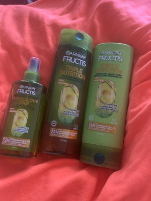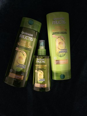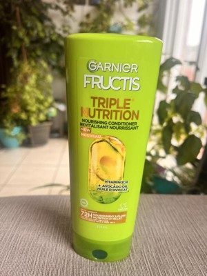 - Nourishing Conditioner: Get up to 72HR nourishment and glow when you use Garnier Fructis Triple Nutrition system of Vegan shampoo, Vegan conditioner, and Vegan leave-in oil; Garnier Fructis Triple Nutrition technology is infused with Avocado Oil and Vitamin E