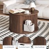28" Round Mid Century Modern Coffee Table with Storage, Fluted Accent Table with Sliding Tambour Door for Living Room