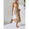 Garvee Women's Hollow Out Suspender Long Dress Slim Fit Tassel Sleeveless Knitted V-Neck Dress Khaki Large