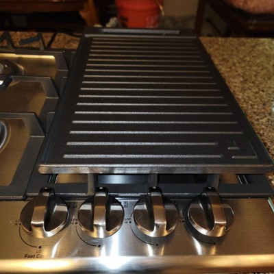【Heavy Duty & Convenient】The continuous edge-to-edge durable cast iron grates and a reversible cast iron griddle included, both dishwasher safe for easy cleanup