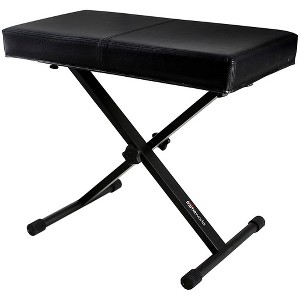 This Frameworks standard black keyboard bench features heavy-duty steel construction with a deluxe wrapped thick padded cushion and rubberized leveling feet. Can be adjusted from 18" to 25" and is 24" wide.