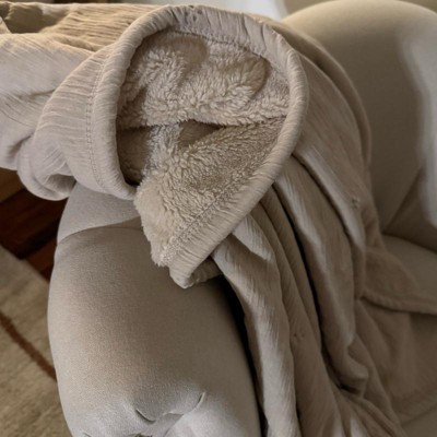 [This review was collected as part of a promotion.] I am in love with this throw blanket! I got the Neutral color and it goes well with my decor. One side is extremely soft and fluffy and the other side is more of a muslin material that is just beautiful. I love the stitched details throughout, which you can see on both sides. This is an absolutely beautiful and cozy blanket!