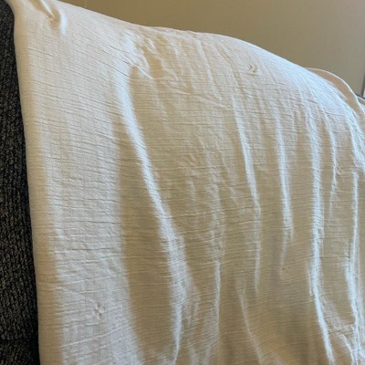 [This review was collected as part of a promotion.] The inside of this throw feels like a cozy blanket and provides significant warmth. The outer shell has a nice minimalist design, neutral color, but an imprint of a petal and a slightly ruched fabric here and there to give it texture. You can't really go wrong with this. It's neutral and also high utility, conveniently also easy to wash which is necessary every week or two because of how light the color is if it's in a daily heavy use environment. Post wash it came out just the same so I'm happy with the quality.