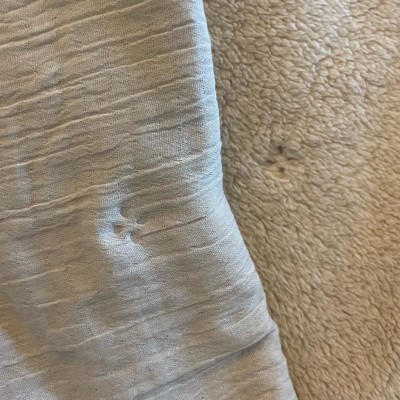 [This review was collected as part of a promotion.] The Threshold Reversable Gauze Throw in green is not my favorite. I love the soft Sherpa like side of it, but the gauze side just seems not as desirable for me. I feel like this blanket would just get ruined very quickly because of the gauze material. For this reason, I will be taking it back to Target for a return.