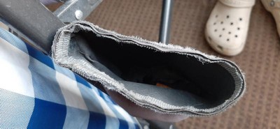 They are supposed to be outside chairs and they are falling apart only had them for 8 months we can't even sit in the due to safety and irritation from fabric falling apart please help me with this issue thanks.