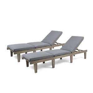 GDFStudio Alisa Outdoor Acacia Wood Armless Adjustable Chaise Lounges with Cushion (Set of 2), Dark Gray/Gray