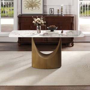 GDFStudio Anouk Modern Artificial Stone Curved Rectangle Dining Table, Gray