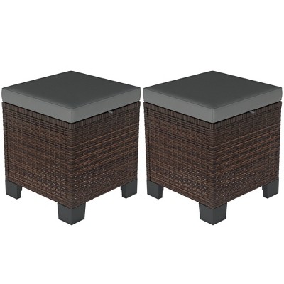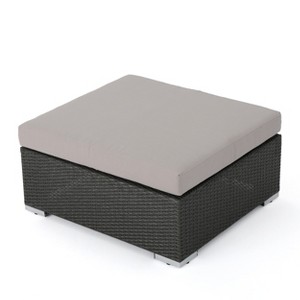 GDFStudio Avianna Outdoor Wicker Rectangular Ottoman with Cushion, Gray/Light Gray